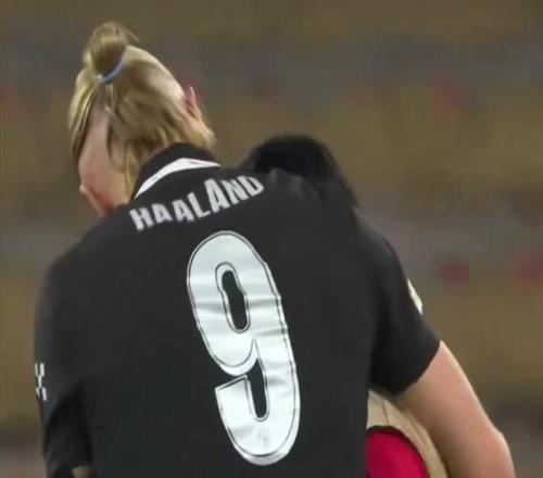 哈蘭德與南野拓實(shí)擁抱寒暄,此役哈蘭德為曼城打進(jìn)2球,而效力于摩納哥的南野拓實(shí)擔(dān)任替補(bǔ)未能出場。